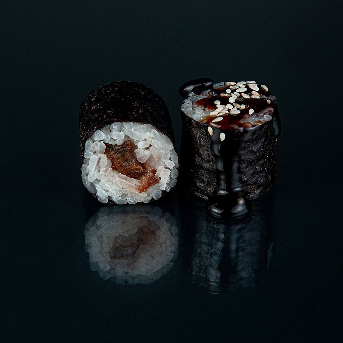 Рис, норі, вугор, кунжут, соус унагі.