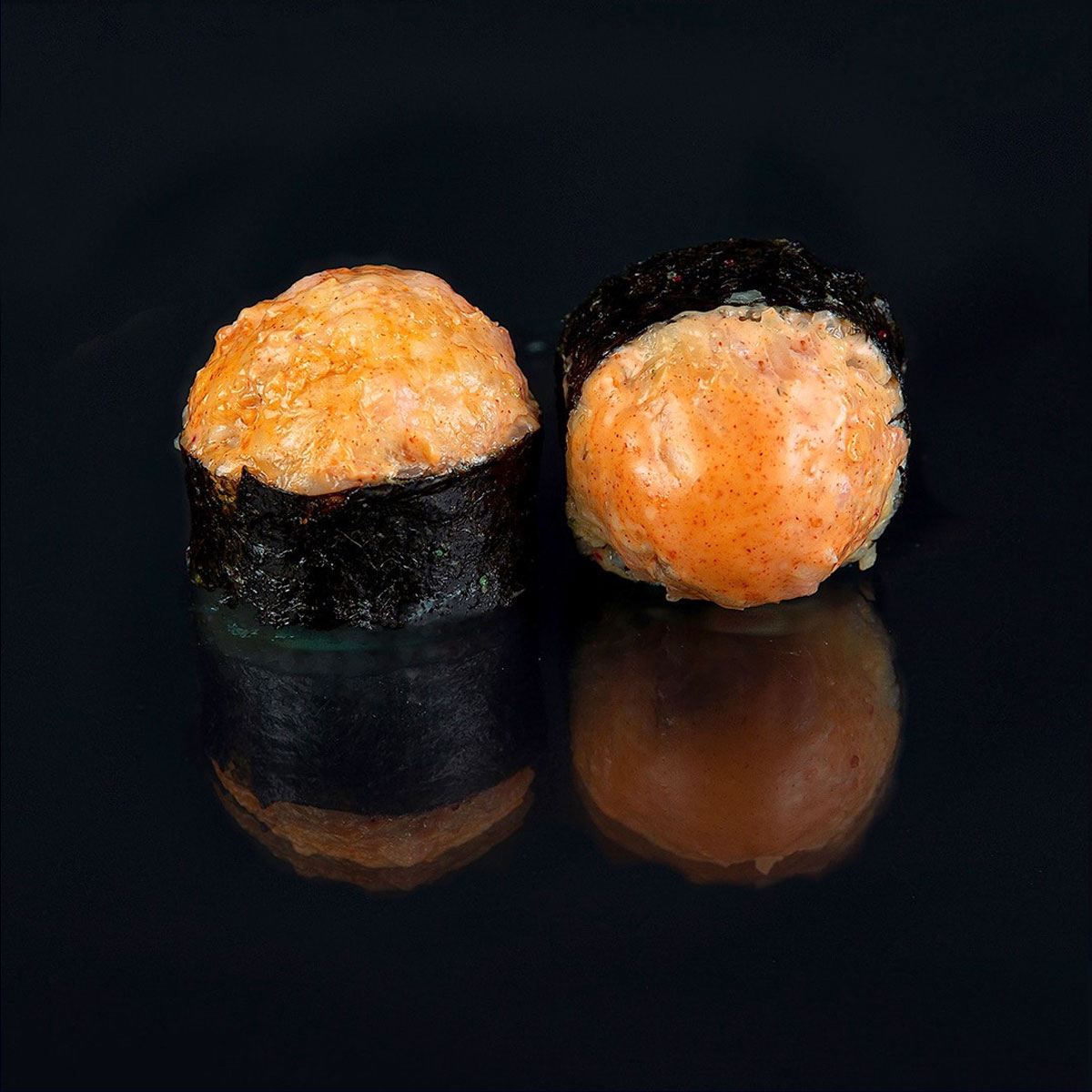 Рис, норі, сир філадельфія, сир пармезан, краб, лосось, авокадо, майонез, соус спайсі.